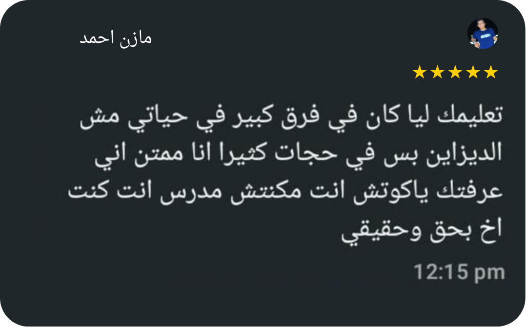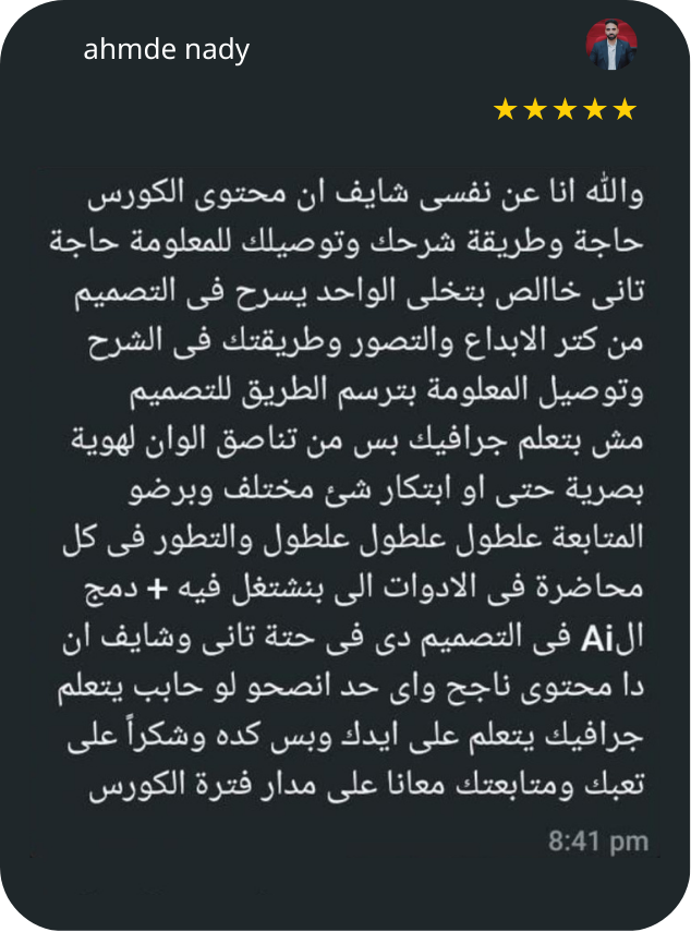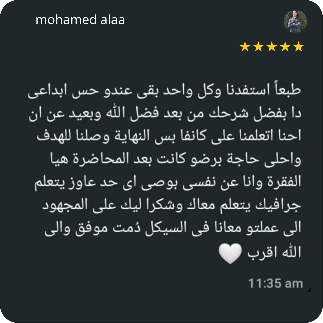 - بعد 16 محاضرة اللي هتاخدوهم هتلاقوا على الموقع كورس تصاميم احترافية مسجل – ده مجاني للمشتركين واختياري لو حد حابب يطور من نفسه أكتر، اسمو “كورس التصاميم الإبداعية”